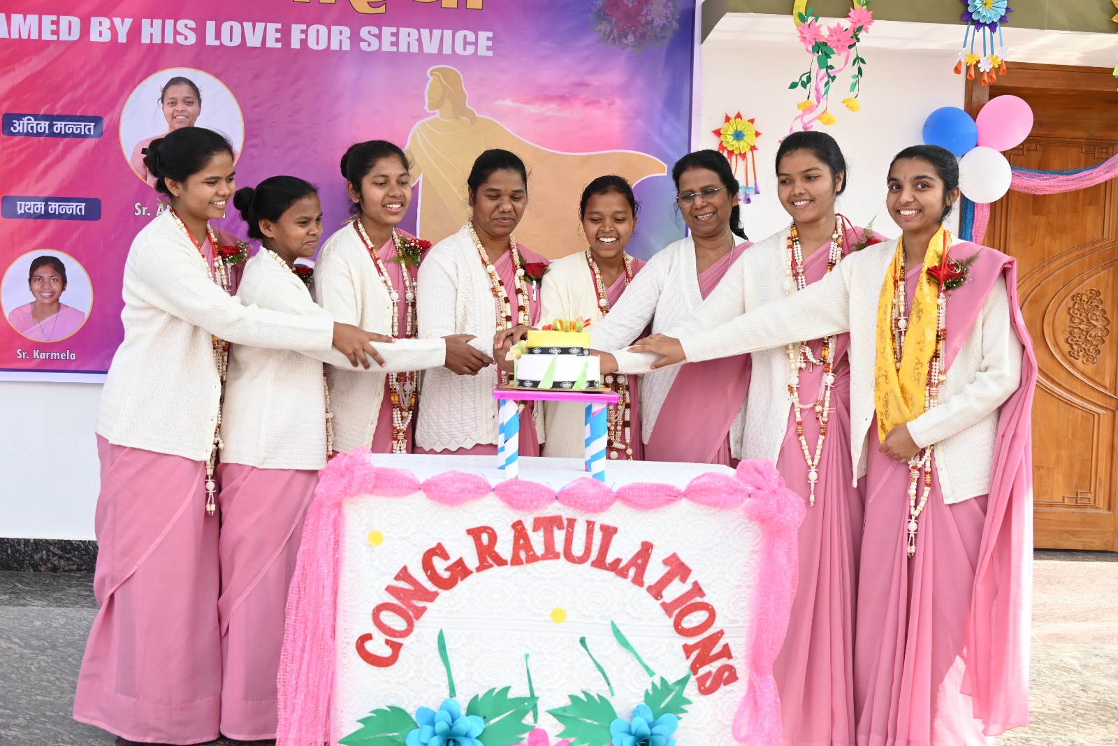 The MID India Province joyfully celebrated the final profession of Sr. Alka Ekka and Sr. Anupama Majhi, along with the first profession of five novices — Srs. Anchal Xalxo, Aseema Beck, Kalista Ekka, Karmela Kispotta, and Sapna Tigga — on November 17, 2025, at Holy Cross Convent, Patparia, Ambikapur. The solemn Eucharistic celebration was presided over by Rt. Rev. Antonis Bara, Bishop of Ambikapur, in the presence of sisters, family members, and well-wishers. The event was marked by prayer, joy, and heartfelt thanksgiving as the newly professed embraced their call to consecrated life.